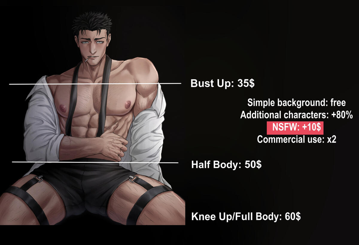 Iβll start your commission after I receive full payment.π I might turn down a commission if Iβm not comfortable with it β hope you understand.π NSFW is 18+ only.π I also take an extra fee of 5β10$ for complex details like weapons, armor, lots of piercings, detailed clothes, mechanical arms, and similar things.π I offer up to 2 free revisions during the sketch stage, and any extra changes will cost from $2. I can also make 1 revision after the flat colors stage, but no edits after that. Iβll stay in touch with you after each step.π Deadline is up to 3 weeks (Iβll probably finish earlier, but I like to give myself some buffer time).π Please send me all the details for your commission right away β references, poses, color palette, and your idea.π I reserve the right to post the finished piece on my social media.π All rights to the artwork remain mine.π I donβt do refunds.